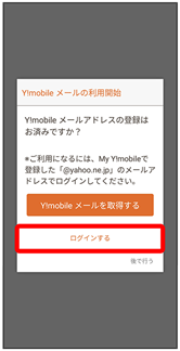 - Y!mobile メールアドレスを作成する場合は、Y!mobile メールを取得するをタップして画面の指示に従って操作してください。