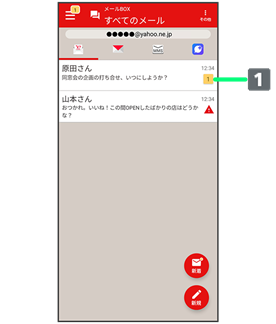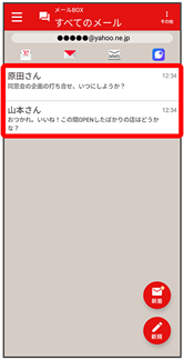 - 相手を限定せずに、迷惑メール・ゴミ箱以外の受信したすべてのメールを確認するときは、すべてのメールをタップします。