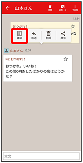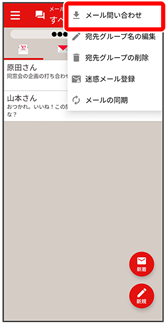 - メール送受信画面で、宛先グループ(相手)名をタップ