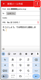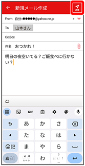 - CcやBccで送信したい場合は、Cc,Bccをタップして、