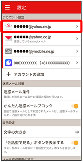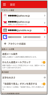 - Y!mobile メール設定画面で、Y!mobile メールのアカウントをタップ