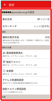 | 指定ドメイン | 指定ドメインに登録した相手からメールを受信したときの通知方法を設定します。 | |