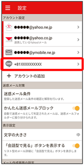 - Y!mobile メール設定画面で、+メッセージのアカウントをタップ