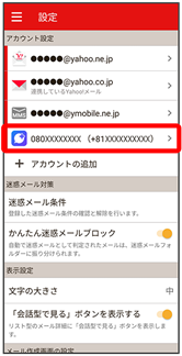 - Y!mobile メール設定画面で、SMSのアカウントをタップ