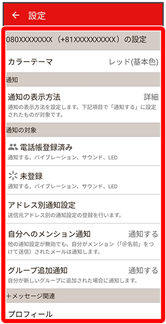 | 未登録 | 電話帳に未登録の相手からメールを受信したときの通知方法を設定します。 | |