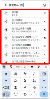 - 選択候補から住所や都市、施設名などをタップ