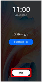 - 画面ロックを解除しているときは、アラーム通知のスヌーズ/停止をタップします。