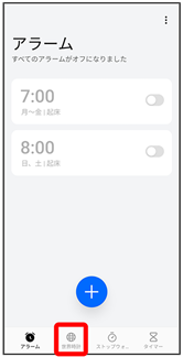 世界時計画面が表示されます。