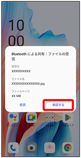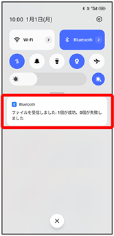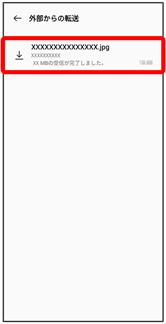 - 受信完了後、ステータスバーを下にフリック/スワイプ