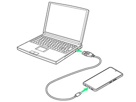 - 本機とパソコンをPC接続用USB Type-Cケーブルで接続する