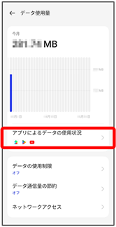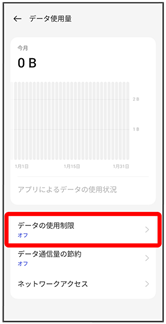モバイルデータ通信の使用量を確認したり、使用を制限することができます。