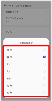 ディスプレイ消灯までの時間の設定が完了します。