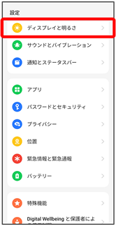 ディスプレイと明るさの設定