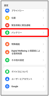 | その他の設定 | より多くの電力を使用する高パフォーマンスモードを設定したり、バッテリーを消耗するアプリを自動で最適化したりするなどを設定できます。 |