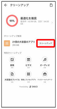 クリーンアップが完了し、本機のメモリの空き容量が確保されます。