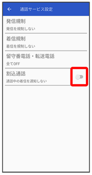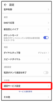 通話サービス設定画面が表示されます。