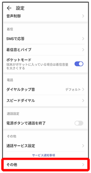 その他の設定画面が表示されます。
