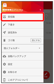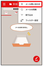 • 受信箱画面で下にドラッグ/フリックしても新着メールの確認ができます。
