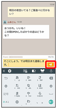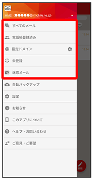 新着のMMS/SMSを受信すると、新着メッセージの通知と、通知アイコンが表示されます。