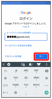 Google アカウントのログイン画面が表示されます。