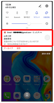 新着メールを受信するとステータスバーに