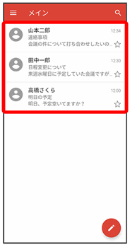 メール一覧画面が表示されます。