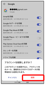 アカウントが削除されます。