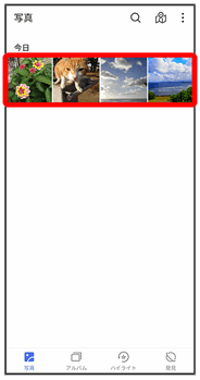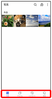 をタップして一覧画面に戻り、見たいファイルを再度選択するか、写真/動画再生画面を左右にフリック/スワイプして切り替えてください。