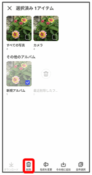 本機のカメラで撮ったり、ダウンロードしたりした写真や動画をアルバムで管理することができます。また、メールやBluetooth®を使用して、ほかの端末やコンピューターへ写真/動画を送ることもできます。