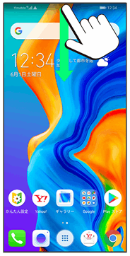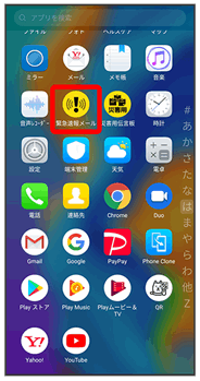 ステータスバーにp30-lite_icon_254とメッセージが表示され、緊急地震速報/災害・避難情報個別の警告音およびバイブレータでお知らせします。