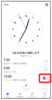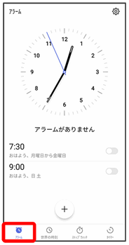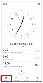 アラーム画面が表示されます。