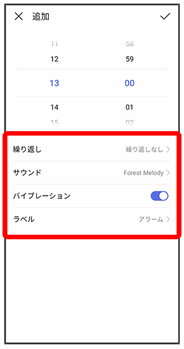 アラーム設定時刻になると、アラーム音やバイブレーションでお知らせします。