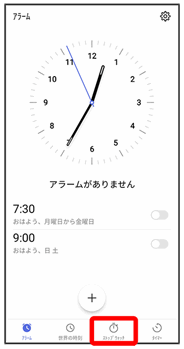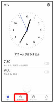 アラームや世界時計、ストップウォッチ、タイマーを利用できます。