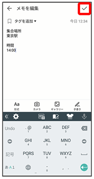 をタップして登録してください。 - メモを新規作成したときは、タグなしが設定されています。