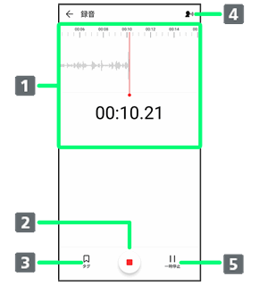 録音中に着信があっても、継続して録音します。電話を受けると、録音は一時停止します。通話が終了すると、録音を再開します。