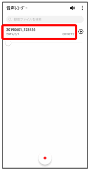 録音を開始した「年月日_時刻」の書式でファイル名がつけられます。たとえば、2019年6月1日午後12時34分56秒に録音を開始したときは、保存されるファイル名は「20190601_123456」となります。