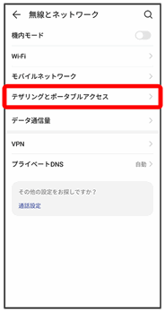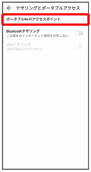 テザリングとポータブルアクセス画面が表示されます。