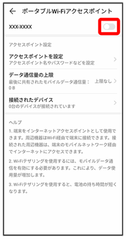 ポータブルWi-Fiアクセスポイント画面が表示されます。