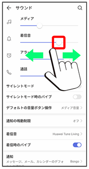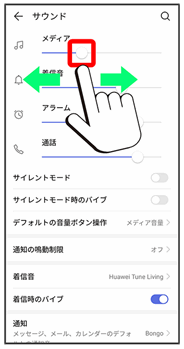 | デフォルトの音量ボタン操作 | 音量キー操作時に調整する音を設定します。 | |