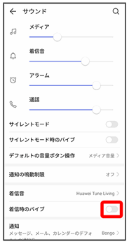着信音再生時にバイブレーションを動作させるかどうかを設定します。