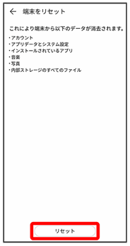 | 端末情報 | 端末の状態や法的情報、Androidのバージョンなどを確認できます。 | |