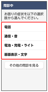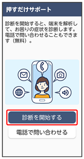 本機の症状を診断し、解決することができます。また、着信音量や文字サイズなど、一部の項目は自動で設定を調整します。