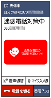 - 過去に犯罪に使用された電話番号やしつこいセールスの電話番号の発着信時に表示されます。