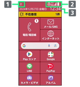 ステータスバーは、本機の画面上部にあります。新着メールなどの通知アイコンや、本機の状態をお知らせするステータスアイコンが表示されます。