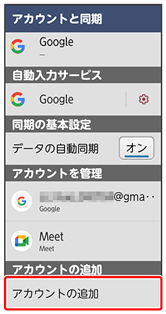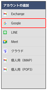 ここでは、Google アカウントの追加を例に説明します。