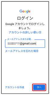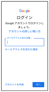 Google アカウントのログイン画面が表示されます。