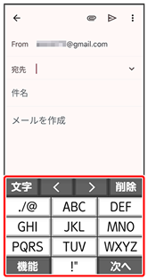 - メール作成画面で
