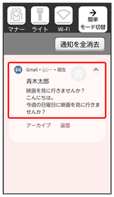 新着メールを受信するとステータスバーに