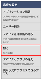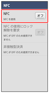 - NFC の使用にロック解除を要求をタップするたびに、オン/オフが切り替わります。