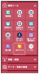 内蔵のICカードを利用して、ほかの機器と手軽にデータをやりとりしたり(NFC)、本機をおサイフやクーポン券、チケット代わりにしたり(おサイフケータイ®)することができます。